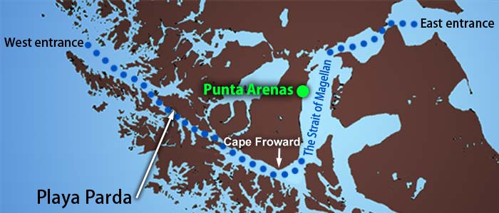 Sailing through the Chilean Islands, Aomi reached the Strait of Magellan. After rounding Cape Froward, Aomi was headed for Punta Arenas, a city with a population of about 120,000. I hadn't had a chance to get food for more than two months because most of the islands in the Patagonian Archipelago were uninhabited. That was the main reason for visiting Punta Arenas.