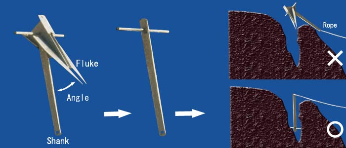 I decided to put the whole anchor in the crack, but every crack around was too narrow for the anchor. In the end, I disassembled the anchor, removed the flukes, and made a cross, as shown below. (Genuine Danforth anchors cannot be disassembled in this way.) I named it the "Rock Anchor."