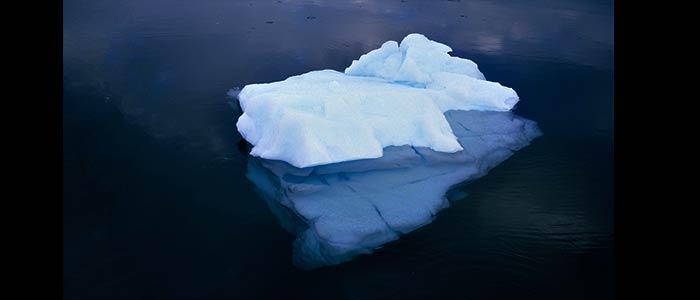 A floating mass of ice rising more than 5 meters above sea level is classified as an iceberg. About 90% of its volume is hidden beneath the water, making it hard to estimate the shape of the submerged part.